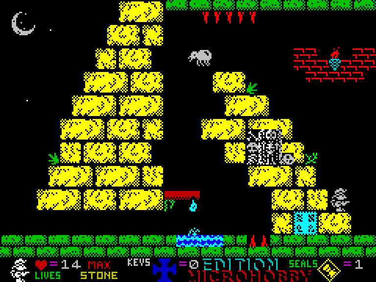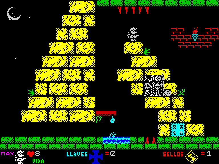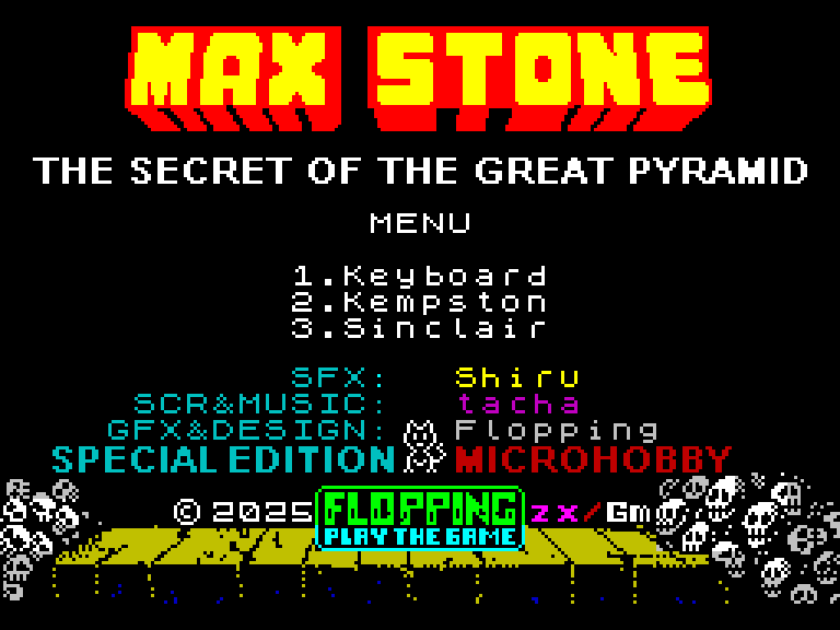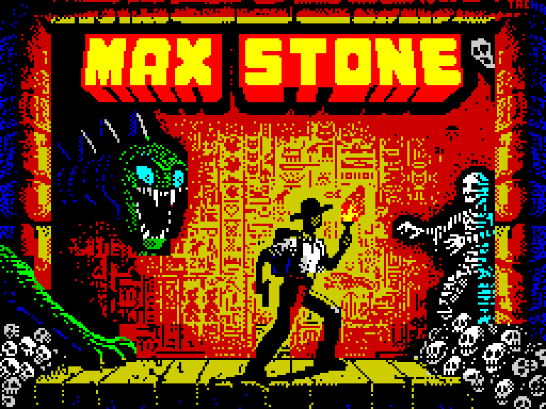 Max Stone — игра прошлого года на движке ZXGM: разумеется, банальная и тормозная. Новая версия сделана для журнала MicroHobby, но лучше от этого не стала.