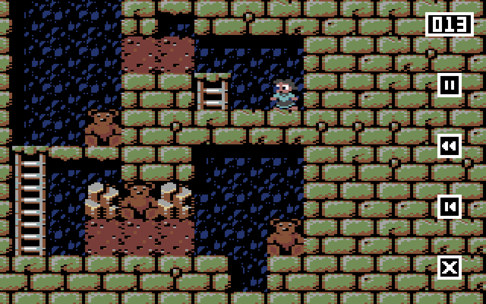 Цель игры — на каждом из 100 уровней собрать все необходимые предметы (или уничтожить всех врагов, что в плане геймплея одно и то же), перемещаясь по экрану и двигая камни (или другие твёрдые предметы). Иногда нужно управлять одним персонажем, а иногда двумя, переключаясь между ними по необходимости.