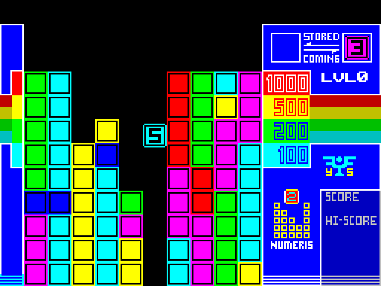 В ней тетрамино заменены на падающие блоки с числами, и нужно не складывать фигурки в колодец так, чтобы очищались заполненные линии, а составлять аккуратные прямоугольники шириной в колодец, а высотой — ну, как повезёт. Когда блок с цифрой падает на дно или на другие блоки, он превращается в колонку соответствующей высоты. Если на колонку высотой в 8 блоков кинуть цифру «5», то колонка станет высотой не в 13 блоков, а всего в 3, зато левая от неё колонка вырастет на единицу. В общем, всё подчиняется обычным правилам сложения в столбик, так что привыкнуть к этому довольно просто. Но если всё равно не очень понятно — почитайте руководство пользователя, там правила объясняются более подробно.