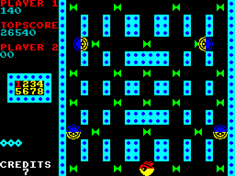 Главный герой здесь бегает по лабиринту, но не лопает мелкие предметы, а стреляет по ним из единственного глаза. Хотя точнее будет сказать «из себя», потому что как герой, так и враги (они тоже умеют чем-то пуляться) и являются по сути большими глазами.