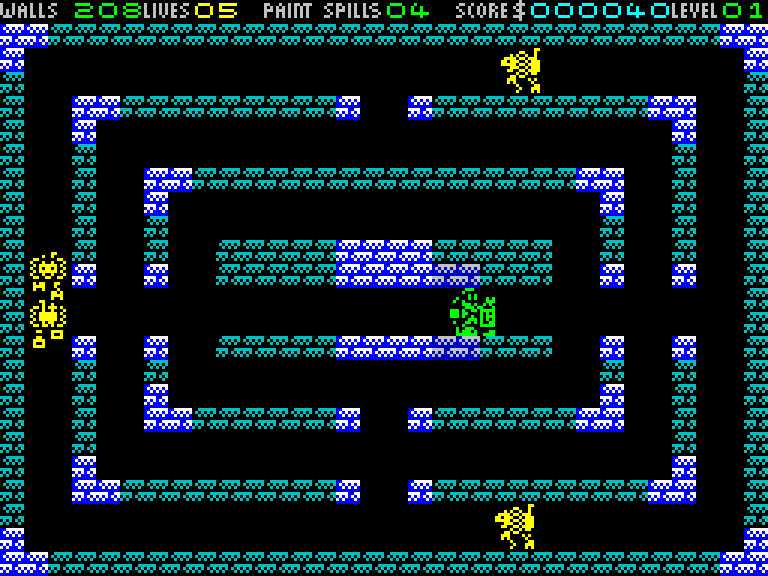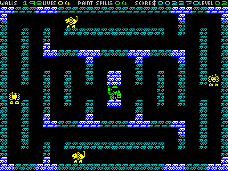 Простенькая одноэкранная аркада, чем-то похожая на Pac-Man. Только здесь нужно не слопать все точки, а покрасить все стены. Управление неидеальное, из-за чего игра сложнее, чем стоило бы.