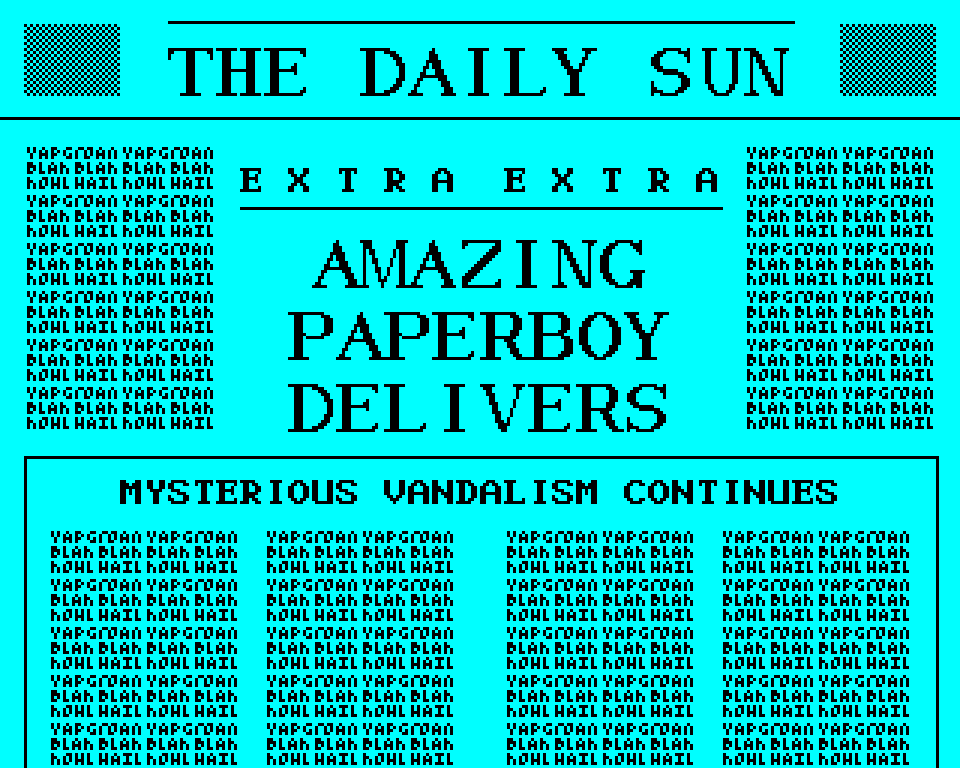 Ваша задача кажется простой — забросить газету в почтовый ящик или на крыльцо дома. Но не тут-то было! На пути встречается масса препятствий, норовящих сбить вас с велосипеда. Тут и собаки, и машины, и неосторожные пешеходы. К счастью, газета в умелых руках становится грозным оружием!