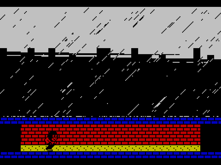 Аркада, в которой вы исполняете роль воришки, бегаете по канализации и пытаетесь собрать все украденные вещи, которые сами же туда сбросили из-за ложной тревоги. Выглядит игра очень даже симпатично — вполне на уровне хорошего AGD-релиза. Управление, конечно, не самое отзывчивое, но для игры на чистом Бейсике — сгодится.