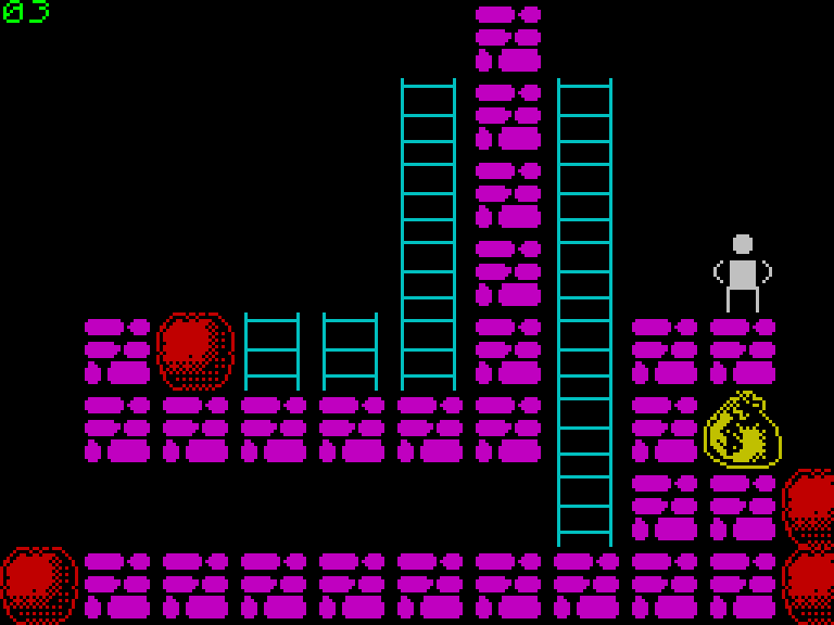 На каждом экране нужно собирать все мешки с золотом, бегая как по ровным поверхностям, так и по лестницам. Ямы в земле можно заделать камнями, а сквозь саму землю можно без проблем проходит. В общем, эдакая компактная версия Boulder Dash, только с куда большим упором на головоломку, а не аркаду.