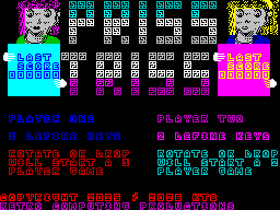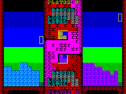 Умеренно любопытный недотетрис, в который можно играть вдвоём. Вместо тетрамино падают фигурки из двух квадратиков, что сильно облегчает жизнь. Реакция на нажатия, клавиш, к сожалению, заторможенная, что странно — это вроде бы AGD.