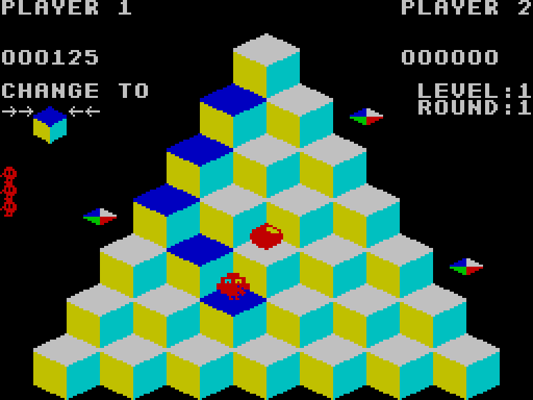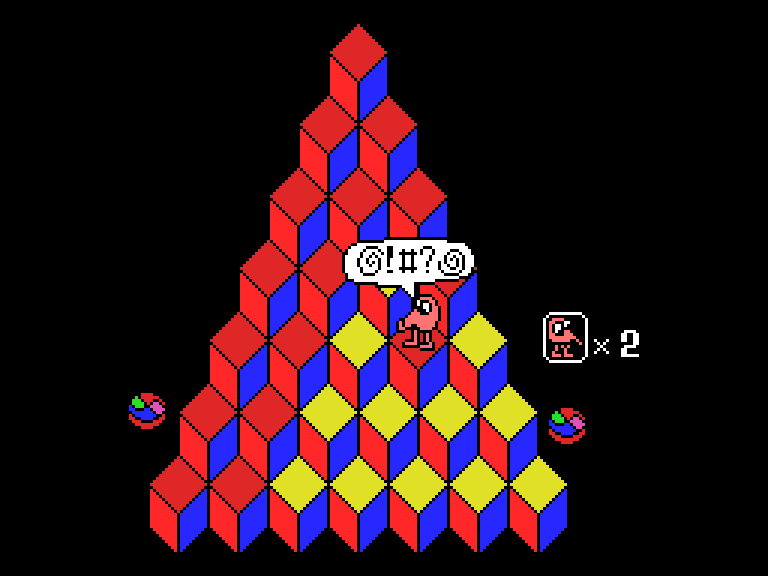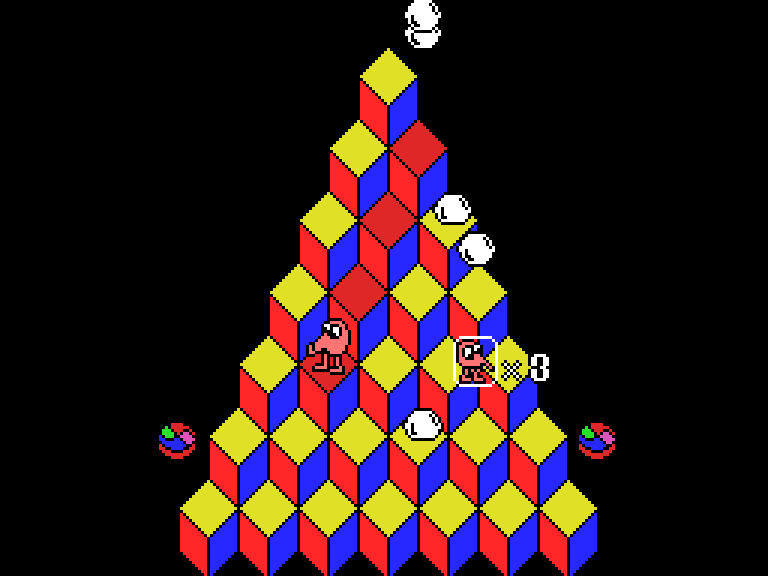 Q*bert — это игра, в которой игрок управляет существом, прыгающим по пирамиде из кубиков. Главная задача — наступить на каждый кубик, чтобы все они стали одного цвета. Однако на пути встречаются враги, которые всячески препятствуют выполнению этой задачи. Для успешного прохождения нужно не только уворачиваться от противников, но и грамотно использовать специальные телепорты. При этом важно следить, чтобы персонаж не сорвался с пирамиды в пропасть.