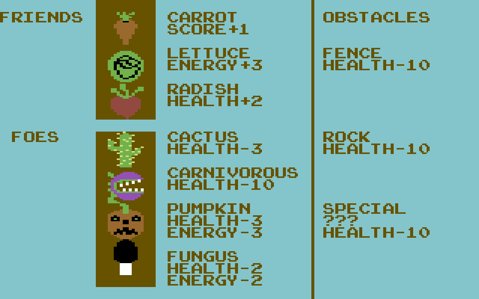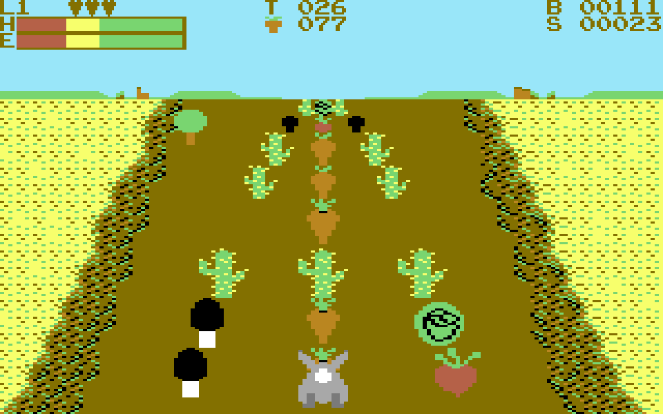 Маленький кролик бежит по полю фермера Уилсона, поедая выращенные им овощи для восполнения энергии. Кроме полезных и вкусных плодов, на поле растут не очень питательные и даже откровенное вредные грибы, кактусы и прочие тыквы. Столкновение с ними (читай: поедание) не прерывает бега, как это бывает в остальных раннерах, но заметно снижает энергию кролика. Восполнить её можно полезными овощами, главное — снова не слопать что-то не то. Однако если врезаться в препятствие вроде камня или забора, то игра завершается.