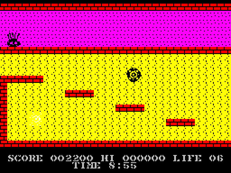 Простая и абы как нарисованная, но всё-таки залипательная аркада, в которой надо за 10 минут пройти кучу комнат и собрать как можно больше белых паутинок. Управление — 9 и 0.