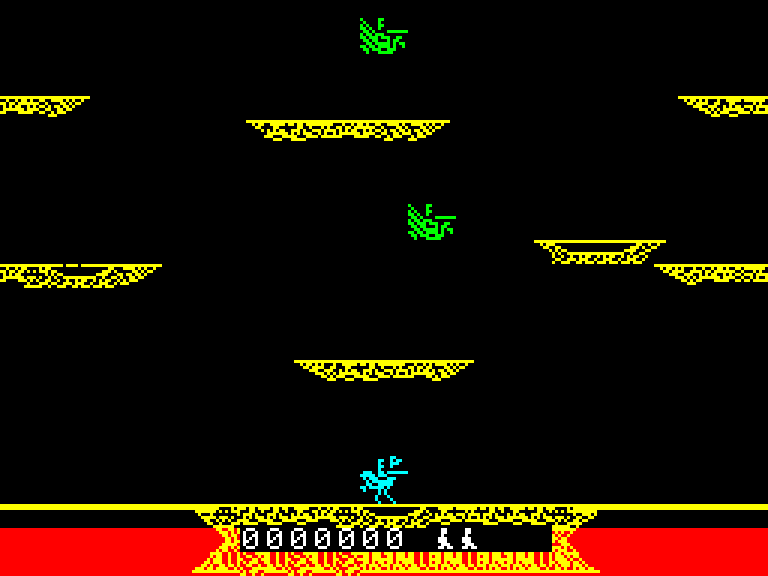 В игре нужно летать на страусах по экрану, стараться не свалиться в воду или лаву и бить оппонентов лапами, запрыгивая на них сверху. А потом — подбирать выпавшие из страусов яйца, пока из них снова не вылупился наездник.