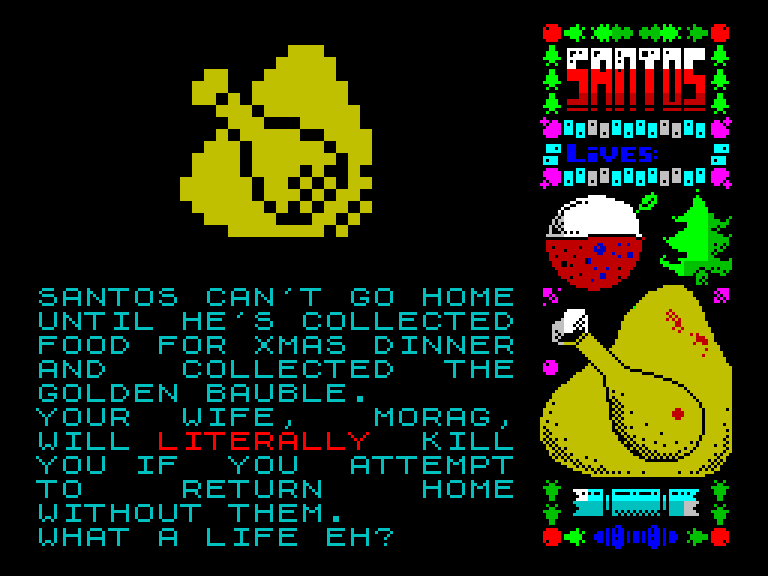 Классический платформер, в котором Сантосу жизненно важно собрать все ингредиенты для рождественского ужина, иначе жена его просто прибьёт.
