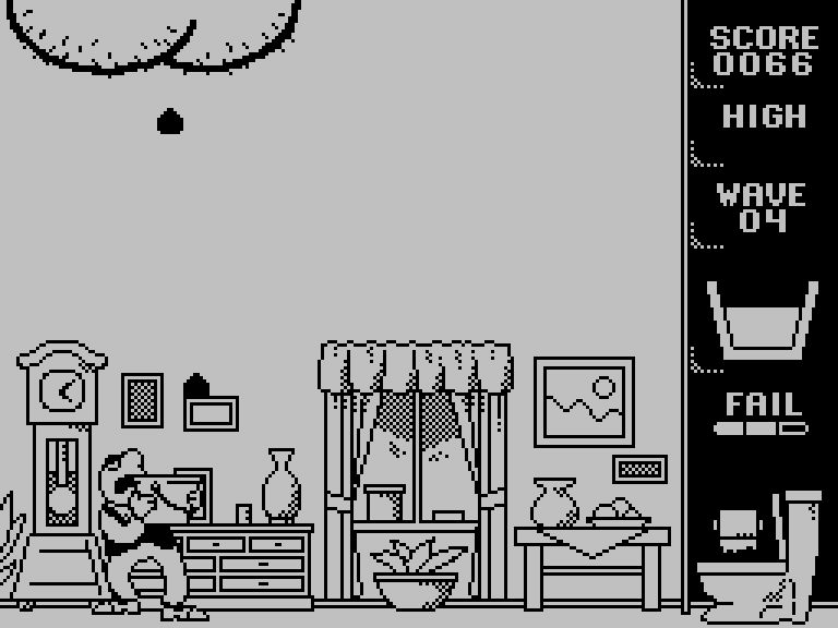 По сюжету вы — владелец квартиры, на потолке которой внезапно появляется огромная задница и с завидной периодичностью начинает гадить прямо в интерьер. Прокляв всё на свете, вы хватаете в руки ведро и бегаете по комнате, не давая отходам жизнедеятельности упасть на пол. Сначала это не представляет никакого труда, но потом гигантская пятая точка начинает пакостить активнее, а ведро банально переполняется, поэтому его приходится носить к туалету и там опустошать.