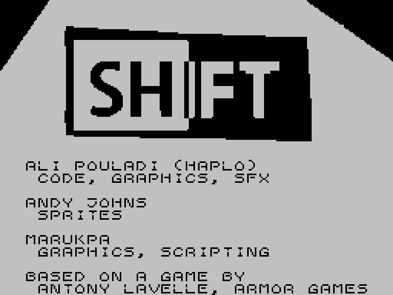 Как правило, допрыгать обычным способом никак не получается, поэтому на помощь приходит главная фишка игры: Сдвиг (Shift). Когда вы нажимаете «огонь», экран зеркалится по вертикали, при этом главный герой остаётся на своём месте. Это позволяет добраться до ранее недоступных мест — так, в принципе, эта игра и проходится. Есть и другие механики, но Сдвиг — главная.