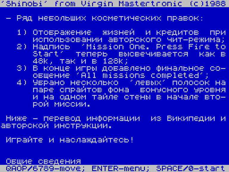 Вышла улучшенная версия экшена Shinobi для ZX Spectrum