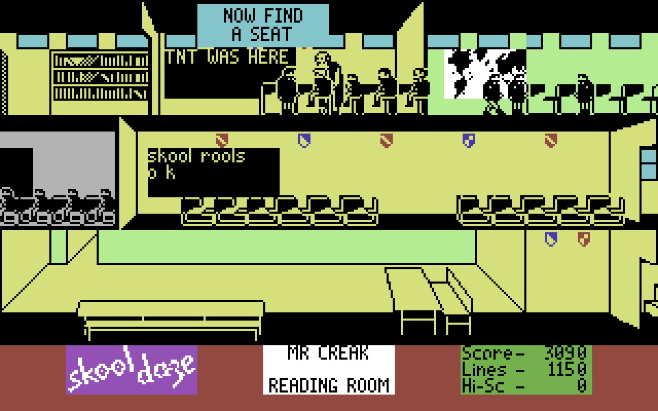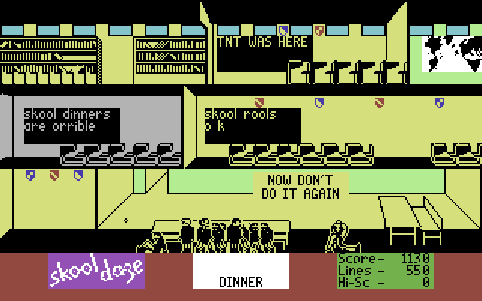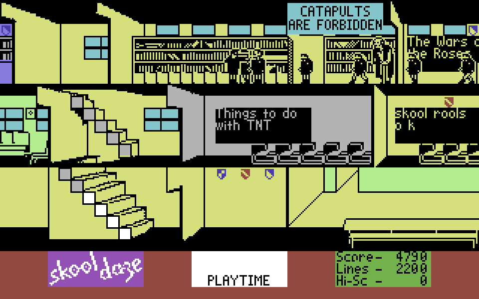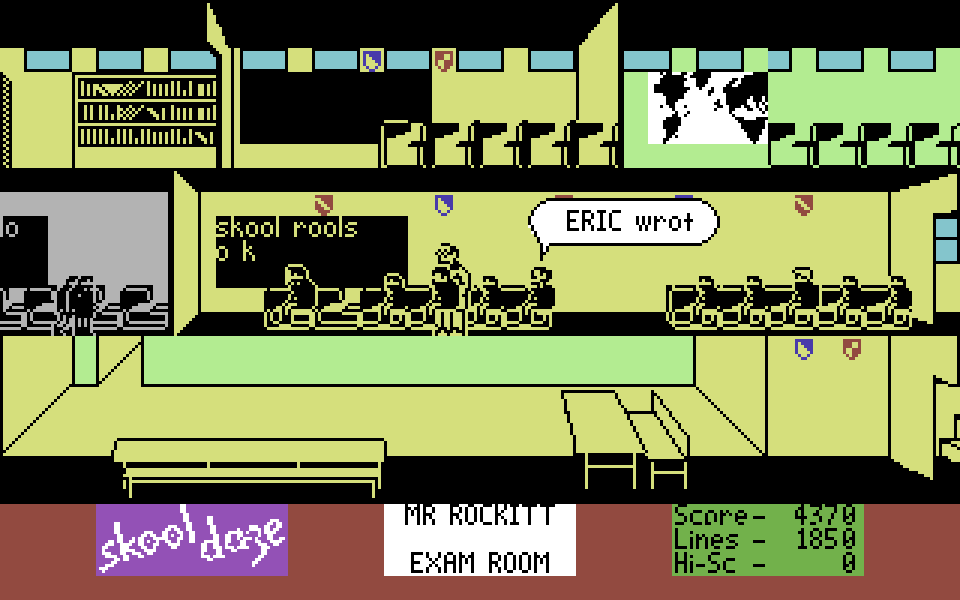 В этой игре, управляя школьником по имени Эрик, вы должны выкрасть его характеристику из сейфа в учительской. Для этого нужно бегать по школе, избегать учителей, пуляться в людей из рогатки, пускать в ход кулаки — в общем, вести себя как самый натуральный хулиган. Как только Эрика застукивают за чем-нибудь нехорошим, пацану назначают исправительную терапию в виде какого-то количества рукописных строчек мелом на доске. Если суммарное наказание переваливает за 10 000 строк, игра заканчивается.