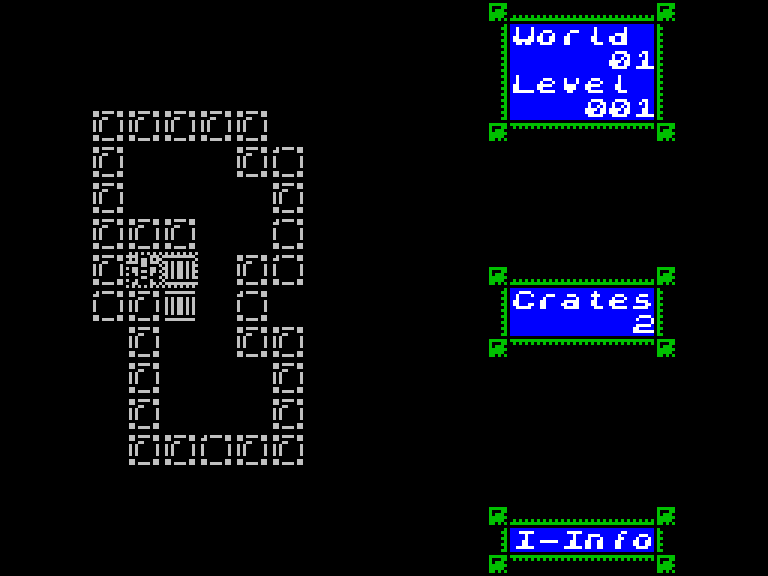 Сокобан с 1000 уровнями для ZX Spectrum 48K. Классическая головоломка, где игрок должен толкать ящики на специальные места. Игра включает функции сохранения и загрузки, множество настроек и плавный геймплей. Поддерживает управление с клавиатуры, а также джойстики Sinclair и Kempston. Исходный код доступен на GitHub. Представляет собой полнофункциональную реализацию популярной головоломки с большим количеством уровней для длительного времяпрепровождения.