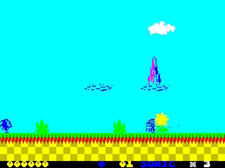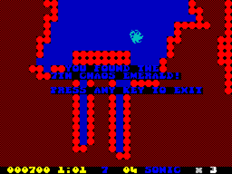 Компактная игра из семнадцати уровней для компьютера ZX Spectrum 48K, в которой игроку предстоит отыскать шесть изумрудов и доставить их к алтарю. Один из кристаллов находится высоко в небе. Это первая игра серии Sonic, выпущенная для данной платформы. Разработчики обещают выпустить версию для ZX Spectrum 128K.