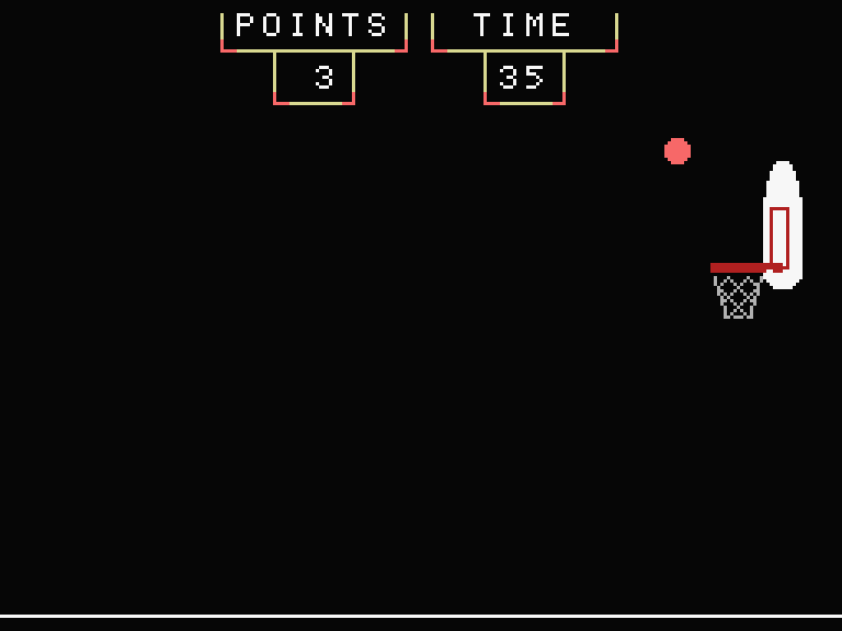 Очень простая однокнопочная игра — вам нужно раз за разом забрасывать мяч в баскетбольное кольцо, которое постоянно появляется на разной высоте в правой части экрана. Сила броска регулируется полоской в нижней части, и вам лишь нужно нажать кнопку в тот момент, когда бегающий туда-сюда индикатор находится в плавильном месте. Выиграть в SPC Super HOOPS, само собой, нельзя, можно просто набрать как можно больше очков.