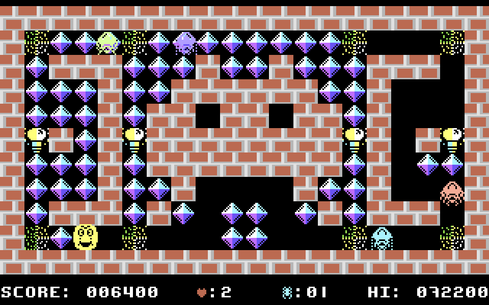 В Spider Maze вам предстоит управлять улыбчивым Фредом, круглым жёлтым (!) мячом, завлечённым в хитросплетения лабиринтов легендой про исследователя, что спустился в эти опасные шахты, мечтая найти несметные сокровища. Путь назад оказался отрезан и бедолага завершил свои поиски ужином у гигантских пауков. Не поверив в столь нелепую смерть, Фред сам отправляется разыскать богатства и оказывается в ловушке. Теперь, чтобы выбраться из западни, ему придётся собрать все-все-все алмазы на каждом из 16 уровней, избегая быть загнанным в угол пауками, прыгающими промеж развесистых кружков паутины. Подбирая Лампочки, Фред может на время становиться неуязвимым, собранные Сердца подарят дополнительную «жизнь», а от любых прикосновений к Черепам следует строго воздержаться!