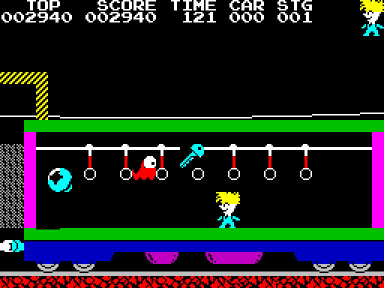 Вы бегаете по крышам вагонов справа налево, уворачиваетесь от врагов и их выстрелов, ловите красных птиц и используете их в качестве оружия, а также стараетесь не врезаться в многочисленные препятствия на пути. Затем несётесь уже внутри поезда, уворачиваясь всё от тех же врагов и привидений, а под конец хватаете ключ, открываете им дверь в кабину машиниста и останавливаете злополучный поезд, получив ставшее уже легендарным поздравление «CONGRATURATION! YOU SUCSESS!»