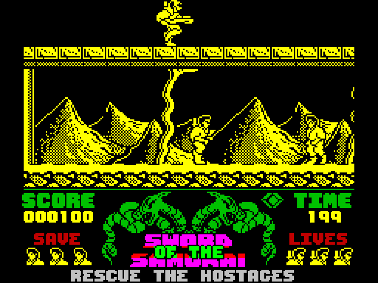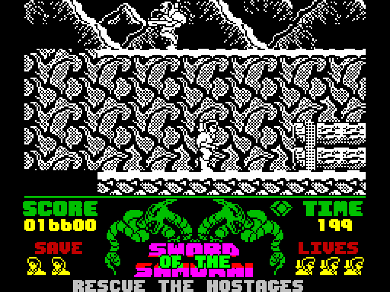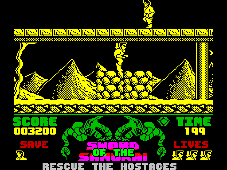 Вы играете за самурая, который должен пройти по нескольким уровням и освободить всех заложников, захваченных бандой террористов, которые предположительно неплохо владеют боевыми искусствами. На пути вам будут встречаться обычные бандиты, которых можно убивать сюрикенами и ножами, а заложников охраняют элитные солдаты в броне и с большими щитами — их надо побеждать в ближнем бою. В целом — неплохой экшен, который несколько портит лишь отсутствие полоски энергии, из-за чего ваш супер-самурай может откинуть коньки из-за одного удара.
