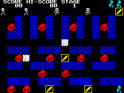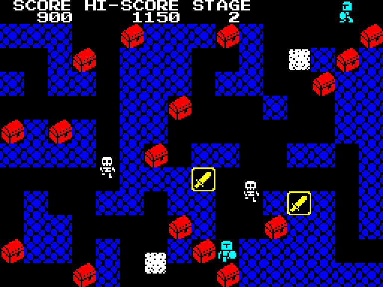 Простая бродилка по лабиринту с 10 уровнями. Надо собирать сундуки, убегать от скелетов и по возможности бросаться в них мечами. Игра вышла на куче платформ, но нам интереснее всего ZX Spectrum.