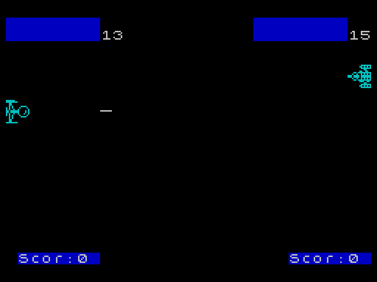 Два игрока управляют космическими кораблями, расположенными в противоположных частях экрана. Механика игры проста — нужно двигаться вверх-вниз да стрелять по врагу.
