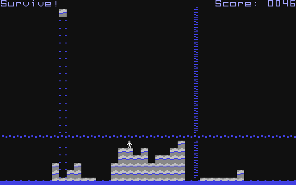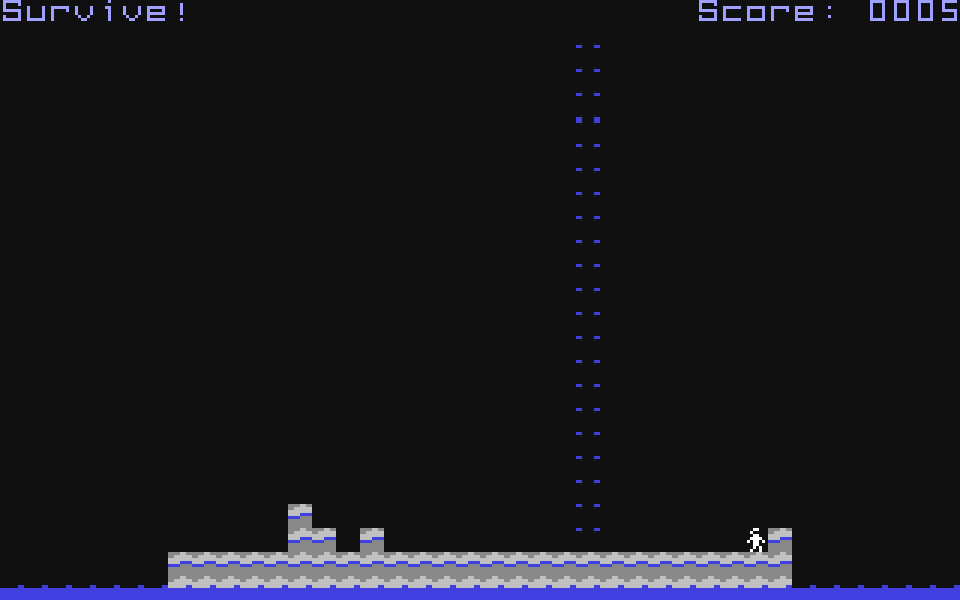 Вы управляете человечком, который носится по экрану и пытается избежать падающих сверху каменных блоков. По счастью, место падения блока всегда подсвечивается, но реагировать на эту подсказку всё равно нужно очень быстро. На высоту одного блока наш бедолага даже может забраться, а вот двухэтажные строения ему уже не по силам.