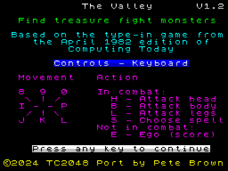 Простенькая игра для ZX Spectrum и Times Sinclair 2048 (с мультиколором). Очень медленная, но фанатам жанра может и зайти.