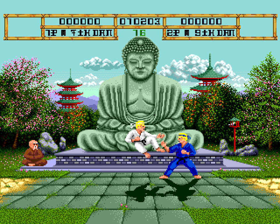 Два первых красочных кадра из The Way of the Exploding Fist для ZX Spectrum Next