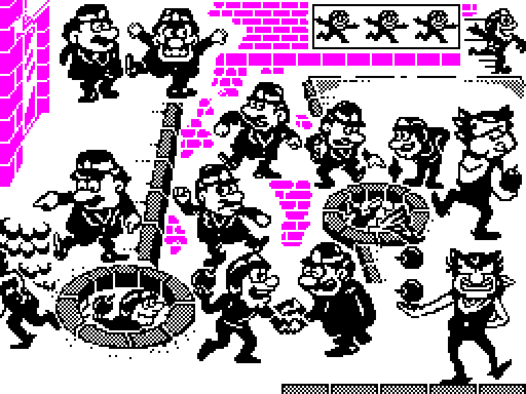 Суть её очень простая — вам нужно бегать по лабиринту канализаций и обезвреживать бомбы, которые раскидал там какой-то нехороший человек. При этом главный герой может двигать стены, но только если вперед нет других стен. С каждым уровнем, а их тут без малого 80 (45 оригинальных и 35 повторяющихся) бомб всё больше, а лабиринты всё сложнее. Через каждые 10 уровней попадается бонус-уровень со скроллингом.