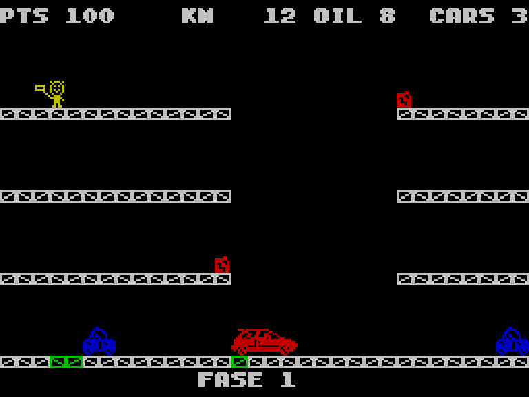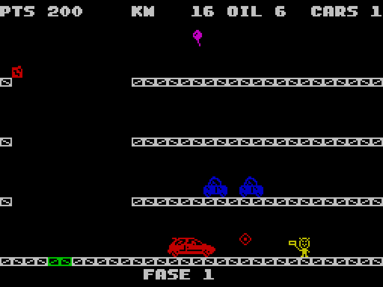 Вы несётесь вперёд (или назад, как вам удобнее) на машине, которая умеет стрелять по встречным тачкам, перепрыгивать препятствия и даже сигать на уровень выше или ниже в специально отведённых для этого местах.