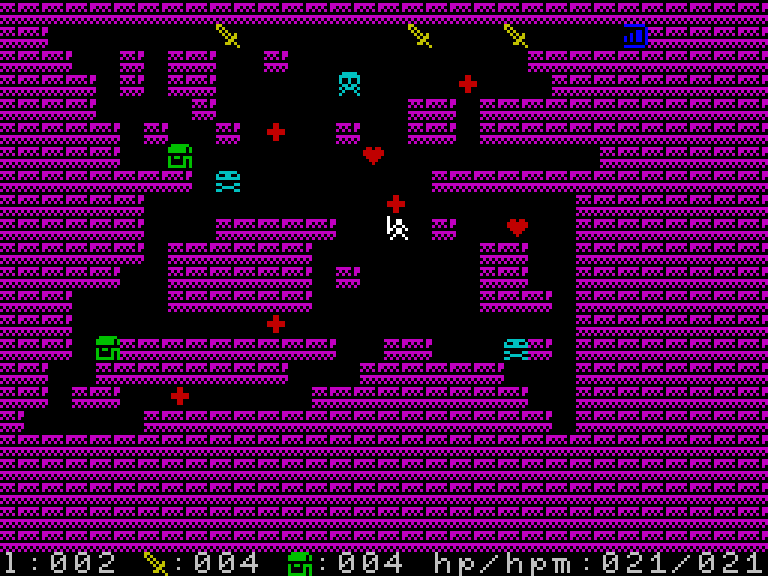 Разумеется, к той самой прародительнице целого жанра, вышедшей в 1980 году, эта имеет опосредованное отношение. Более того — технически она вообще основана на игре Roguelike, которая была написана Якубом Дебским для конкурса игр на Бейсике для Atari 8-bit. Впрочем, основные атрибуты сохранены — вы управляете приключенцем, который бродит по подземельям, сражается с монстрами, собирает сокровища и обладает ровно одной жизнью (да, это обязательное условие «рогаликов»).