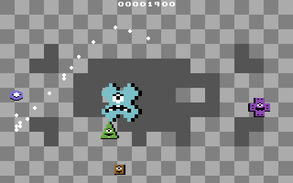 Управляйте фиолетовым нечто, прыгая по платформам и собирая алмазы. Но рассчитывайте маршрут заранее. Падение или возврат на верхний уровень — это конец игры.