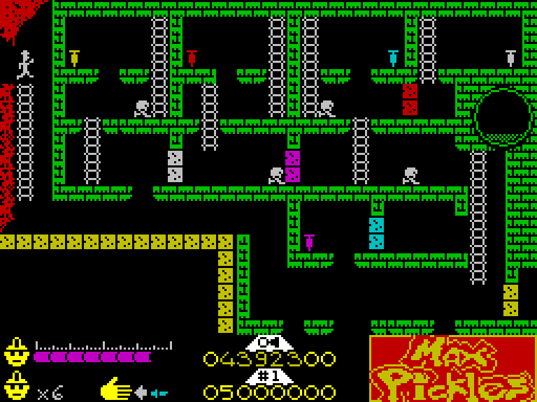 Как мы уже писали раньше, Max Pickles III — это ремейк сразу двух старых игр Ариэля Руиса: Carlos Michelis I и Carlos Michelis II. Геймлей не поменялся практически ни на йоту — главный герой бегает по экранам, перепрыгивает врагов (а некоторых даже убивает ножом!), ползает не лестницам и постоянно открывает всякие двери разными ключами. Несмотря на то, что игра написана на Бейсике, геймплей вполне приличный, а управление тормозит ровно настолько, чтобы не раздражать.