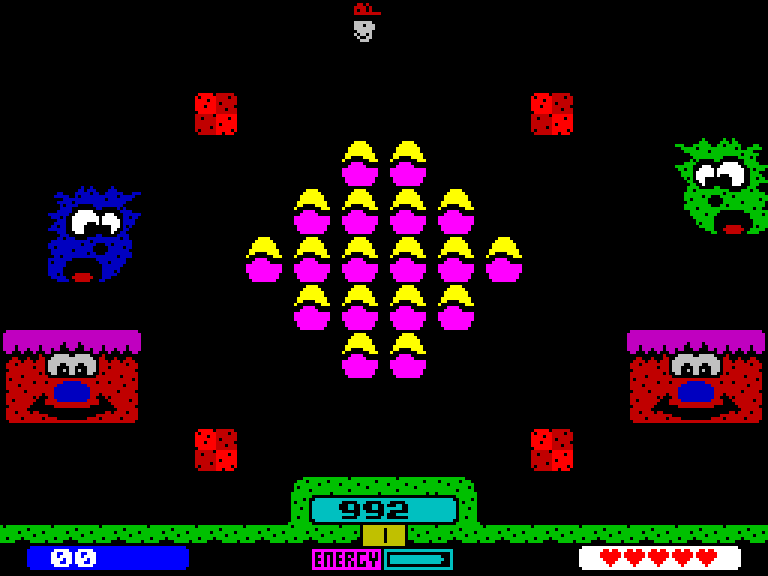 Но нет — новая игра Дэйва The Eggsterminator хоть и похожа визуально на предыдущие работы этого автора (крупные цветастые спрайты, перемещение по знакоместам, характерные звуки и музыка от Yerzmyey), однако в ней не замечено ничего, хотя бы отдалённо напоминающего человеческие отбросы. Ура! Всем по чарке слабительного!