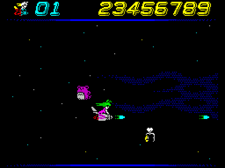 Технологически Go-Go Bunnygun похожа на R-Type — главная героиня, дополнительное оружие, выстрелы и, видимо, враги (когда они появятся) перемещаются по знакоместам, поэтому и могут позволить себе выглядеть красочно. А вот фон скроллируется попиксельно, обеспечивая игре столь необходимую ей плавность. Что ж, остаётся лишь дождаться релиза и понадеяться, что Джейсон не забросит этот проект (до сих пор жалко, что его версия River Raid дальше технологический демки так и не ушла).