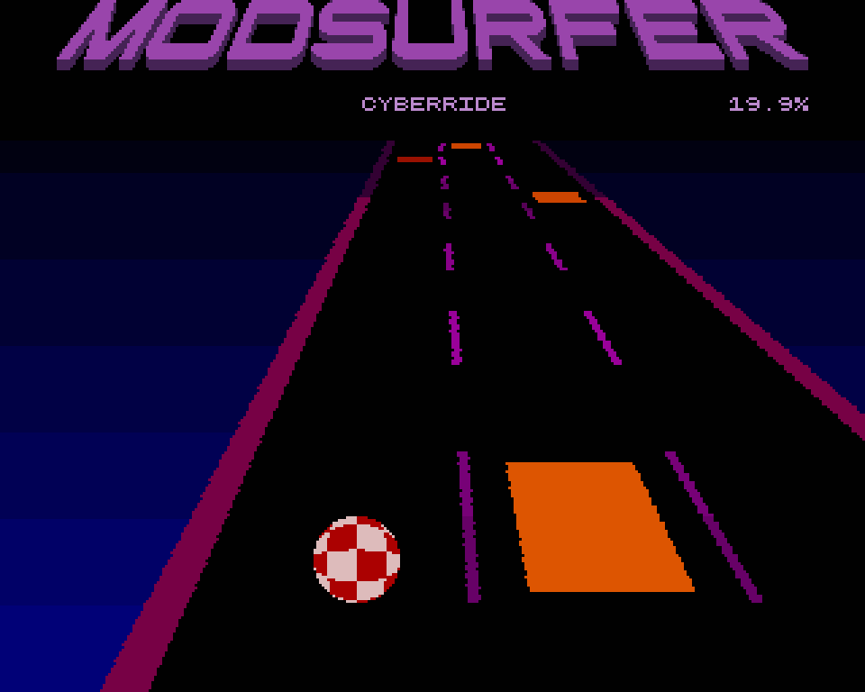 Что и постарался сделать товарищ arcanist с форумов English Amiga Board, выкатив ModSurfer в рамках всё того же EAB GameDev Competition, о котором мы писали в прошлом году. Это ритм-игра для классических версий Amiga, в которой вы выбираете MOD-файл из своей коллекции, а игра анализирует композицию и позволяет прокатиться по ней, прыгая с дорожки на дорожку мячиком в стремлении поймать все ноты. Всё это очень похоже на упрощённый вариант Audiosurf, которой, судя по всему, автор и вдохновлялся.