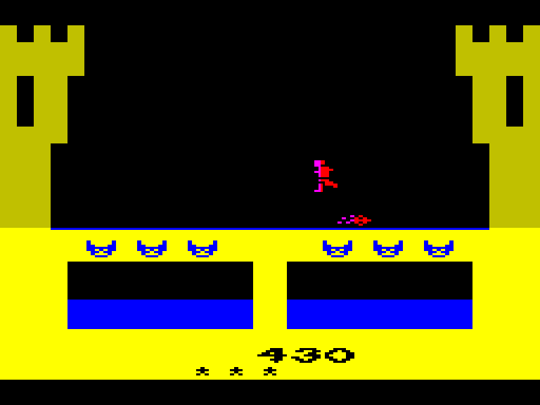 Суть Dragonfire ZX до безобразия проста: на одном экране вам нужно пробежать по мосту в замок, уворачиваясь от пламени засевшего там дракона (то есть приседая или прыгая), а на другом — собрать все сокровища в помещении, тоже пытаясь не попасть под драконью раздачу. И так — много, очень много раз.
