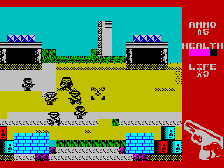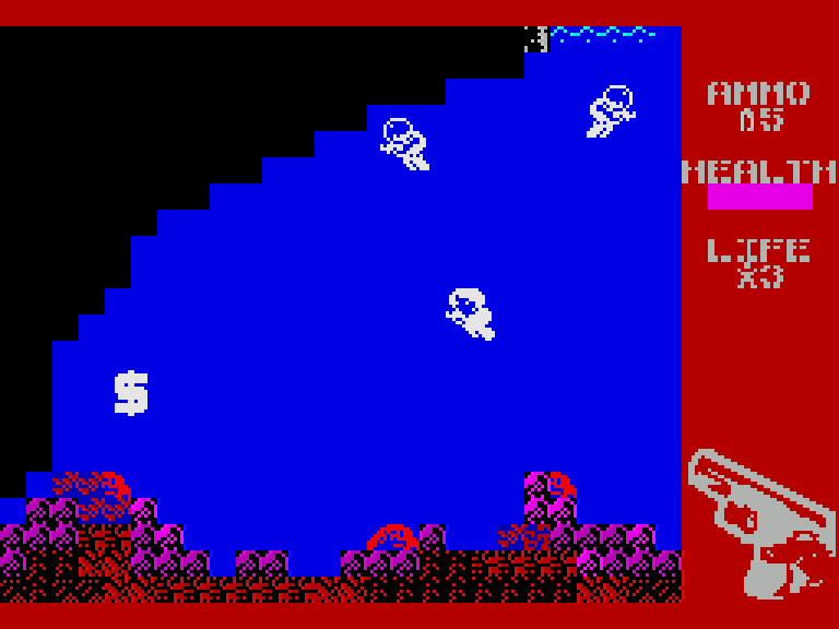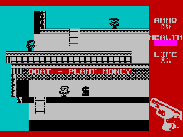 Начнём с PTM — ремейка Licence To Kill, экшена по мотивам одноименного фильма про Джеймса Бонда. Как и многие другие выставленные на конкурс игры, эта конкретная имеет к своему оригиналу очень опосредованное отношение: если Licence To Kill была смесью вертикального скролл-шутера и стрелялки типа Commando (иногда с примесью гонок), то PTM — это наполовину платформер со стрельбой, наполовину виртуальный тир.