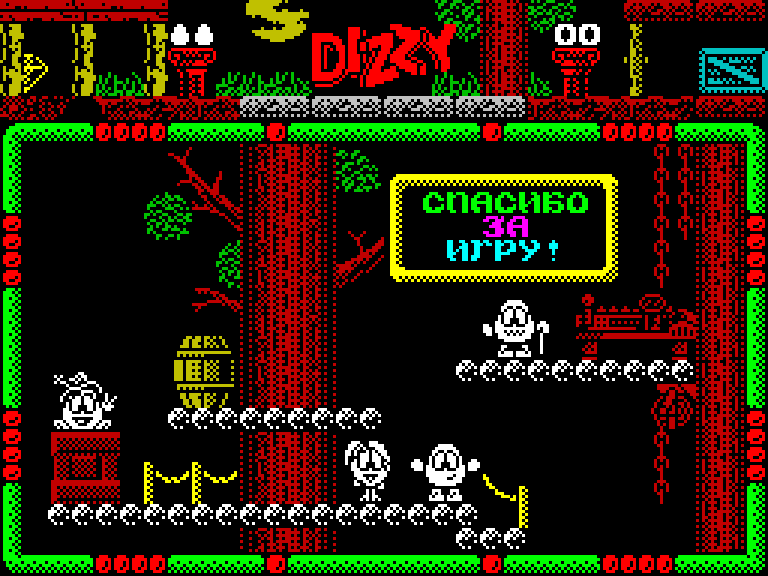 За первое стоит сказать спасибо Валерию Сурженко (Hippiman) — этот товарищ наконец-то подарил спектрумистам надежду на появление новых игр про Диззи не раз в десять лет, а как минимум по несколько штук в год. В конце концов, на движке DizzyAGE написаны десятки отличных приключений и аркад про нашего любимого персонажа, которые ждут, не дождутся портирования на ZX Spectrum.