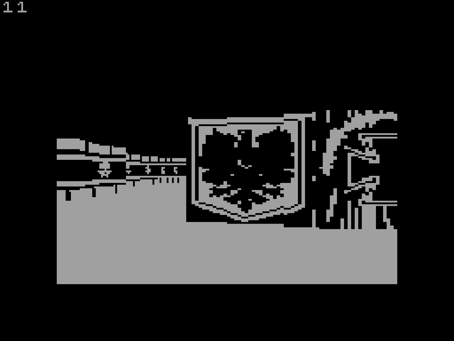 Другой продуктивный путь — отказаться от текстур и сделать игру в духе The Dark. Готовых движков здесь нет, но сама задача с точки зрения программиста намного проще. Спрайты в этом случае можно нарисовать любые. Кроме того, возможна реализация стен разной высоты, полётов и некоторых других плюшек. Например, таких, как на этой картинке: