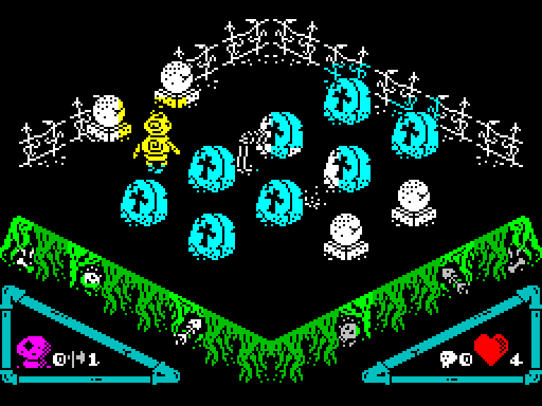 Строго говоря, это всего лишь альфа-версия, но вполне играбельная. От всевозможных Knight Lore и Pentagram она отличается наличием разных цветов на игровом поле — здесь и главный герой жёлтый, и всевозможные объекты покрашены то в зелёный, то в голубой, то ещё во что-нибудь приметное. А предметы, которые нужно подбирать, вообще переливаются всеми цветами радуги (ну, почти).