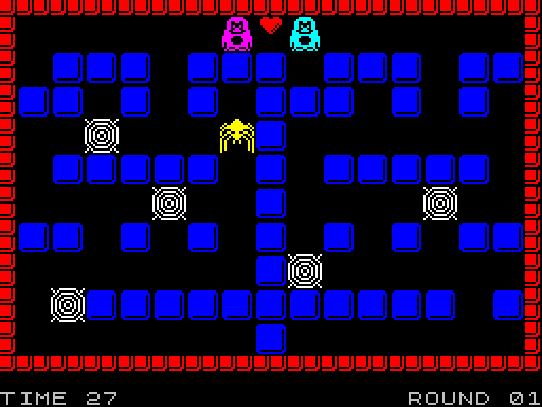 Головоломка, в которой нужно провести двух пингвинов противоположного пола к сердечку, чтобы они встали слева и справа от него. Задача усложняется не только наличием смертельно опасных пауков и отнимающих драгоценное время паутин, но и тем, что управляются оба пингвина одновременно, причём фиолетовая птица всегда движется в нужном направлении, а перемещения второй отзеркалены по горизонтали.