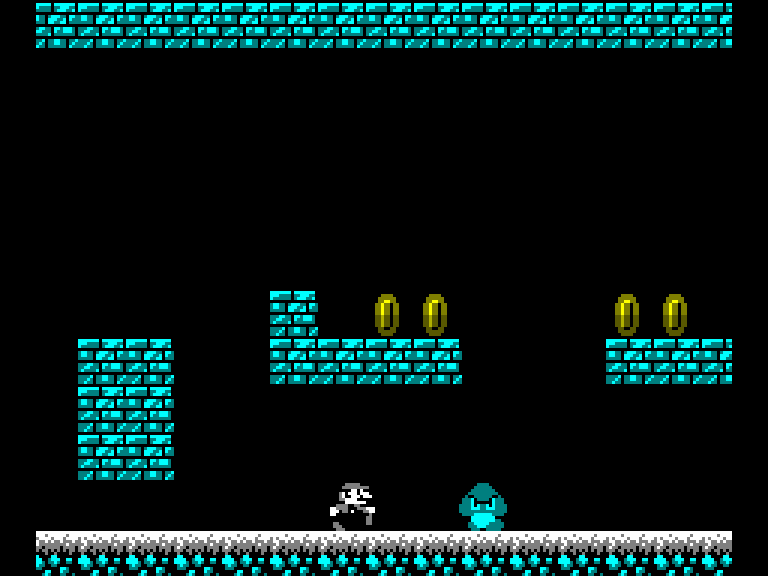 Тут несколько причин. Во-первых, в 2002 году я уже предпринимал попытку сделать «Марио» на «Спектруме». Сам концепт игры — что она должна работать со скоростью 50 кадров в секунду и использовать гигаскрин для «промежуточного» цвета — был придуман ещё тогда. В итоге я сделал демку из четырёх уровней, с монохромной графикой и с дополнительными спрайтами на переднем плане в турбо-режиме. Вышло весьма достойно, но проект так и не был закончен.