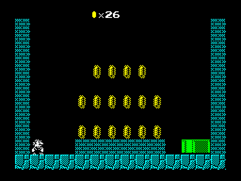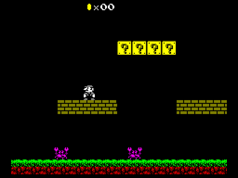 Тут несколько причин. Во-первых, в 2002 году я уже предпринимал попытку сделать «Марио» на «Спектруме». Сам концепт игры — что она должна работать со скоростью 50 кадров в секунду и использовать гигаскрин для «промежуточного» цвета — был придуман ещё тогда. В итоге я сделал демку из четырёх уровней, с монохромной графикой и с дополнительными спрайтами на переднем плане в турбо-режиме. Вышло весьма достойно, но проект так и не был закончен.