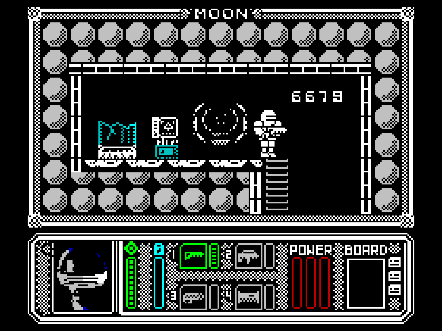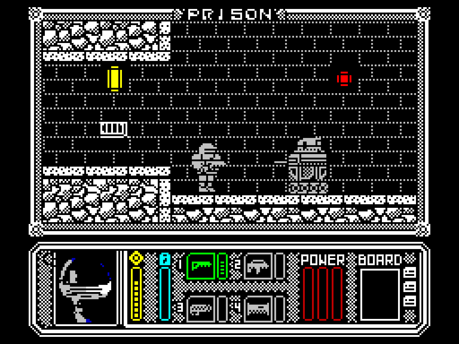 Встал вопрос с графическим оформлением, стал шерстить YouTube-архивы игр для «Спектрума» вроде RZX Archive и Modern ZX-Retro Gaming, пытаясь выяснить, а что вообще пишут на этот агрегат. Глаз зацепился за отличную игру Laser Squad с графикой top-down, где все объекты занимают 2×2 знакоместа. Laser Squad очень понравилась единством концепции, дизайна и воплощения, предтечей пошаговой X-COM; несколько позже выяснил, что X-COM сделал тот же автор. Сюжет окончательно оформился и более не менялся до конца: пять уровней от тюрьмы до лунной базы, карточки, коммуникаторы, смена оружия — всё это было расписано за один заход. Частично был нарисован графон для первого уровня (местами свой, местами перерисованный с той же LS).