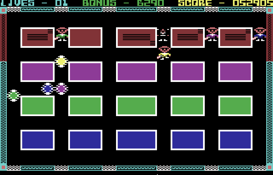 С виду она немного похожа на Pac-Man — главный герой тоже бегает по лабиринту, стараясь не сталкиваться с врагами. Однако цель на каждом экране совсем иная — надо оббежать вокруг все прямоугольники с числами, дабы их полностью закрасить и получить соответствующее количество очков. Сделать это непросто — враги постоянно движутся в вашем направлении, а спустя какое-то время в верхней части экрана появляются вредители, которые медленно спускаются в низ и смывают краску.