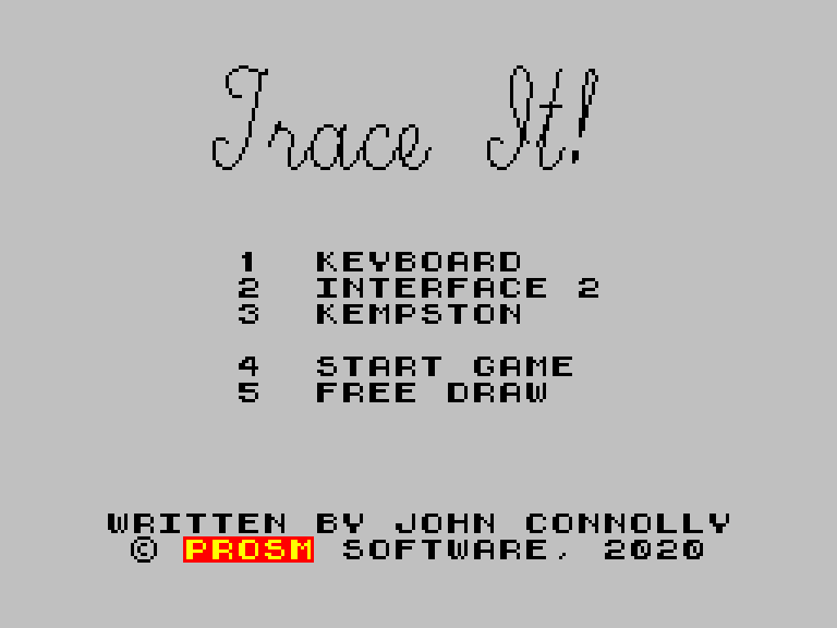 Спектрумист Джон Коннолли по прозвищу PROSM, потихоньку делающий свой движок для создания графических квестов под ZX Adventure Designer, немного отвлёкся на простенькую аркаду Trace It!, работающую даже на 16-килобайтном ZX Spectrum.
