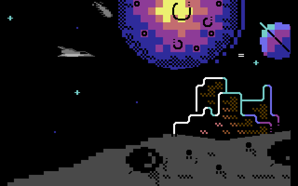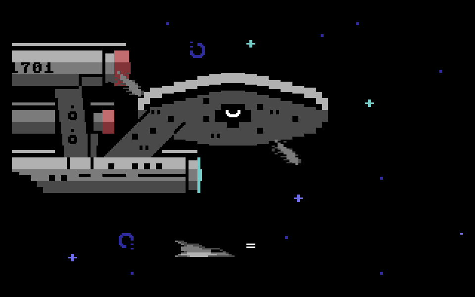 Получилась пусть и очень короткая, но стильная игра с графикой из набора символов PETSCII, знакомого всем владельцам Commodore 64. Вы управляете звёздным истребителем, который летит слева направо сквозь живописные космические пейзажи (по пути попадается даже знаменитый «Энтерпрайз» из «Звёздного пути»!) и изо всех пушек стреляет по врагам.