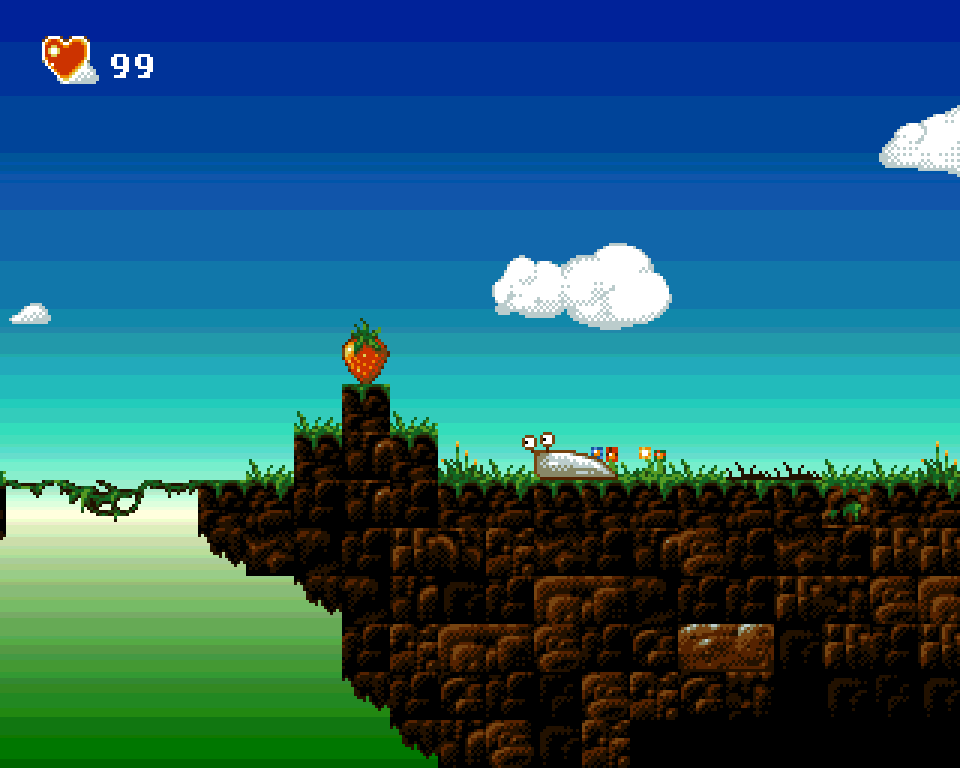 Поскольку главный герой — слизняк, то он умеет ползать не только по земле, но также по стенам и потолку. Плюс по мере прохождения наш ползучий любитель ягод приобретает новые способности, которые позволяют ему проникнуть в ранее недоступные места. Игра выглядит вполне симпатично и отлично работает даже на самых базовых моделях «Амиги».